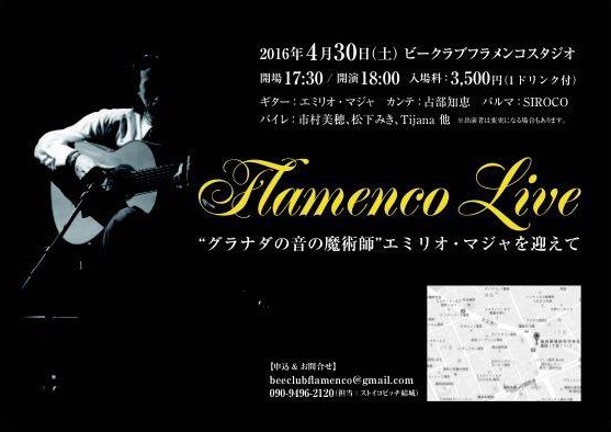 グラナダ出身のギタリスト、エミリオ・マジャを迎えてのフラメンコライブにて歌わせていただきます(๑≧౪≦)
