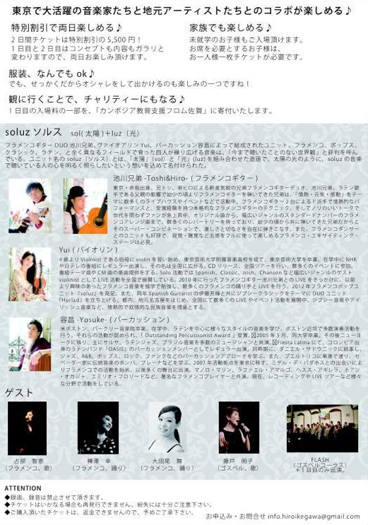 関東を中心に全国で活躍されている「Soluz(ソルス)」の皆さんの佐賀ツアーにカンテで参加させていただきます!!