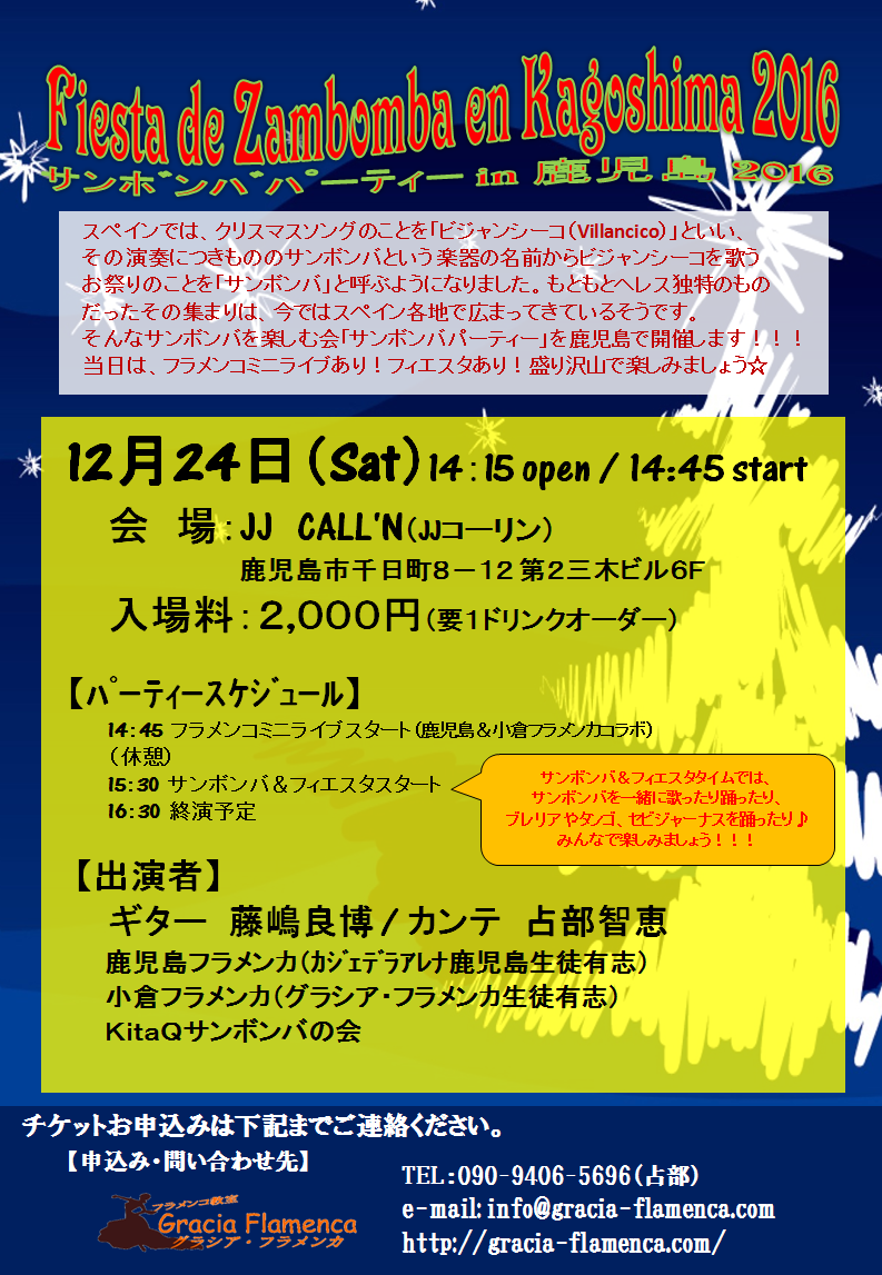 ◎12月24日(土) Fiesta de Zambomba en 鹿児島 2016
