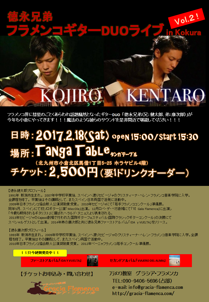 ◎2月18日(土) 徳永兄弟フラメンコギターDUOライブ in Kokura
