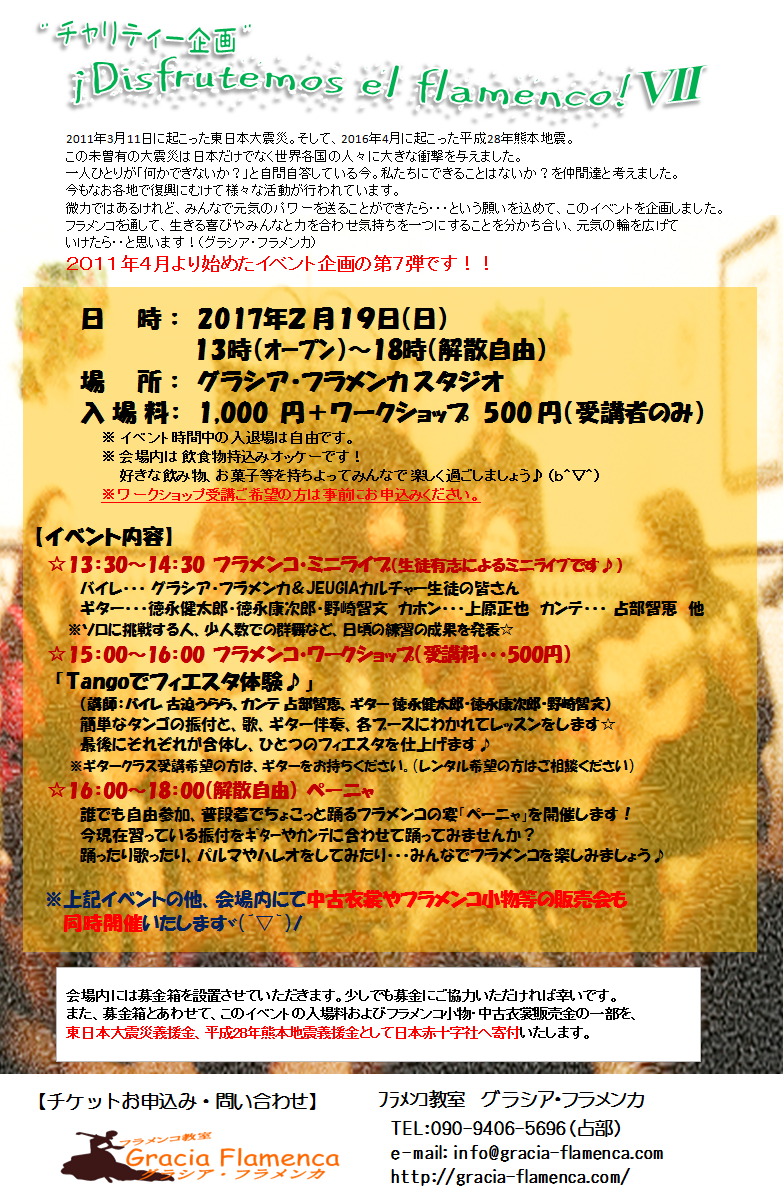 ◎2月19日(日)“チャリティー企画” ¡Disfrutemos el flamenco!Ⅶ