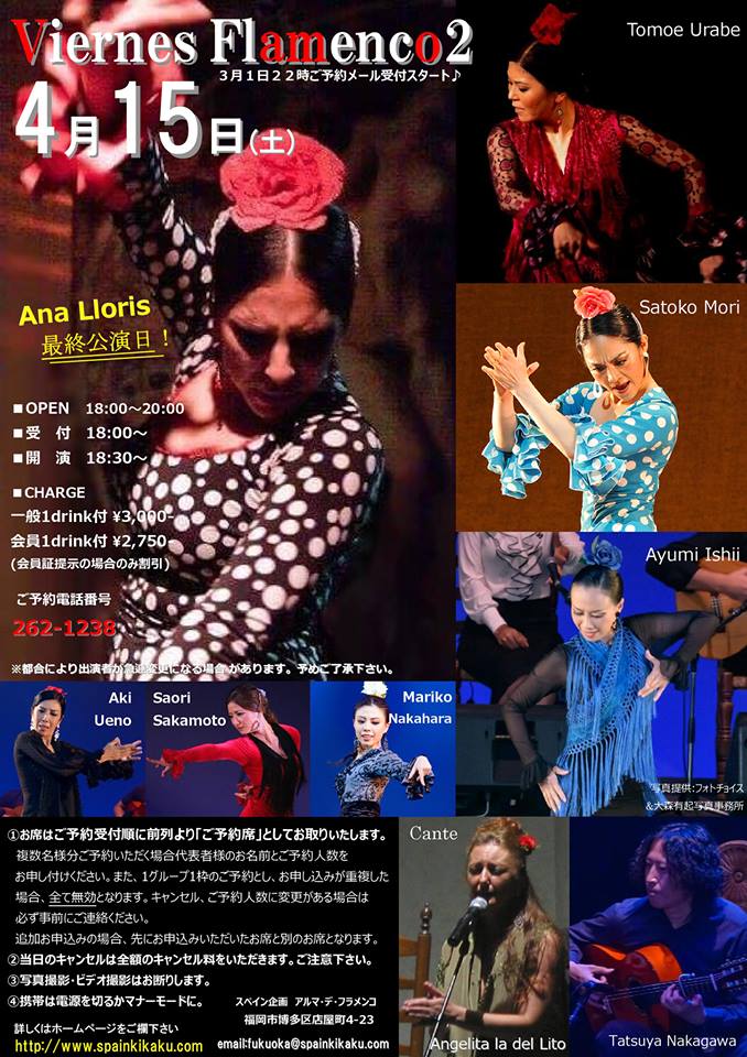 いつもお世話になっているLa Alegriaの皆さんはもちろん、九州各地のフラメンカ達が沢山出演します☆