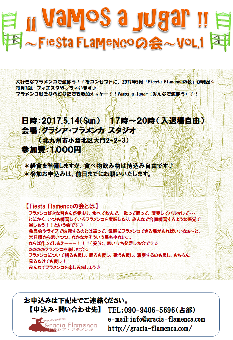 ◎5月14日(日) ¡¡Vamos a jugar!!~Fiesta flamencoの会~Vol.1