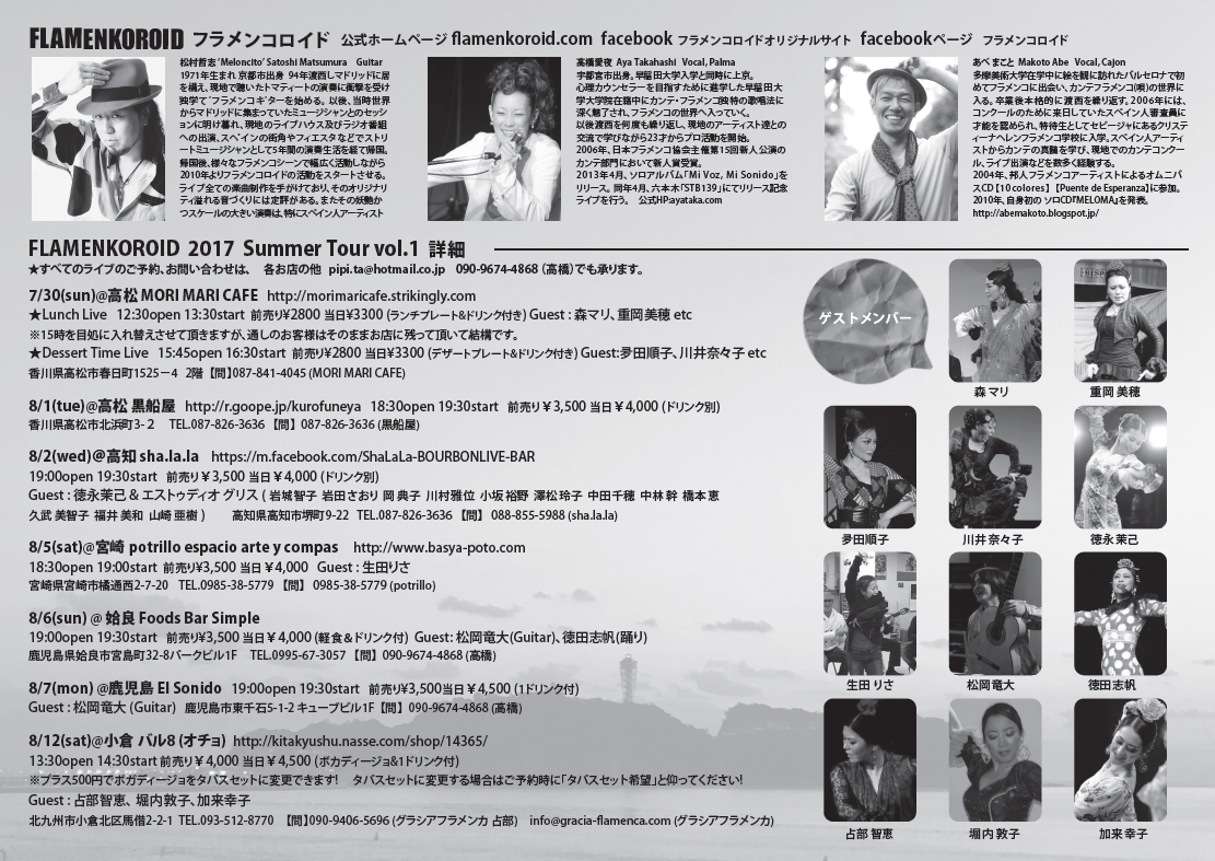 ◎8月12日(土) FLAMENKOROID 2017 Summer Tour @小倉バル8
