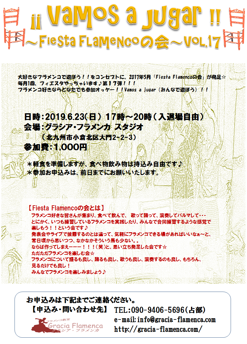 ◎6月23日(日) ¡¡Vamos a jugar!!~Fiesta flamencoの会~Vol.17