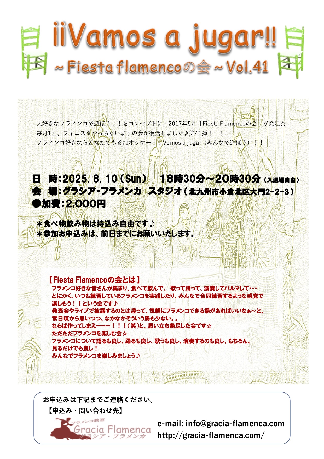 ◎8月10日(日)¡¡Vamos a jugar!! 〜Fiesta Flamencoの会〜 Vol.41